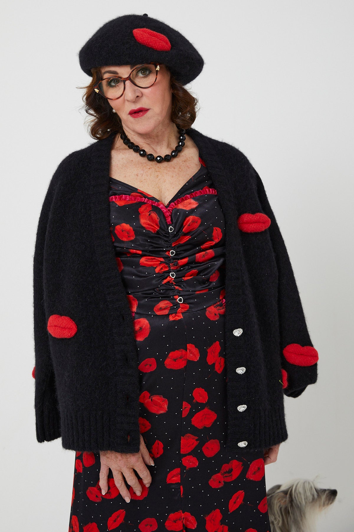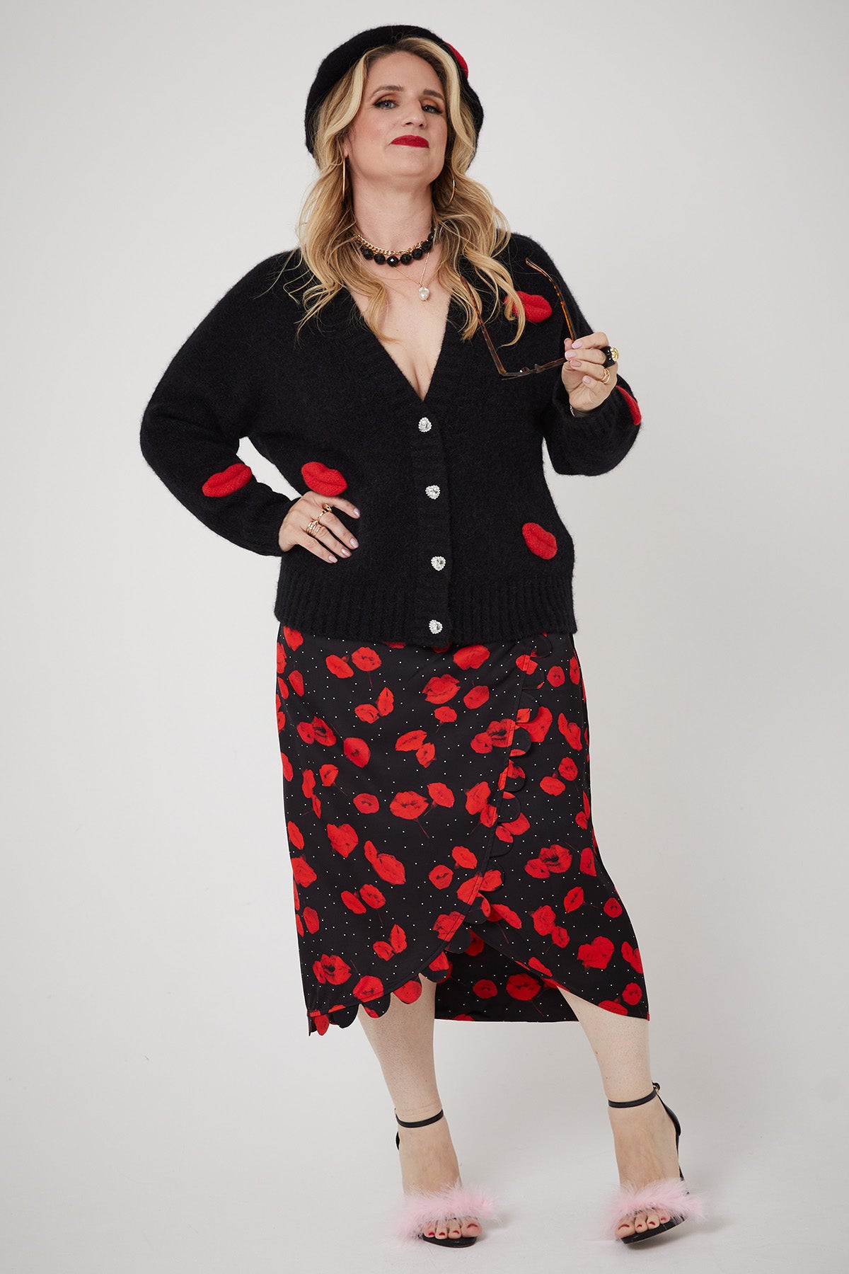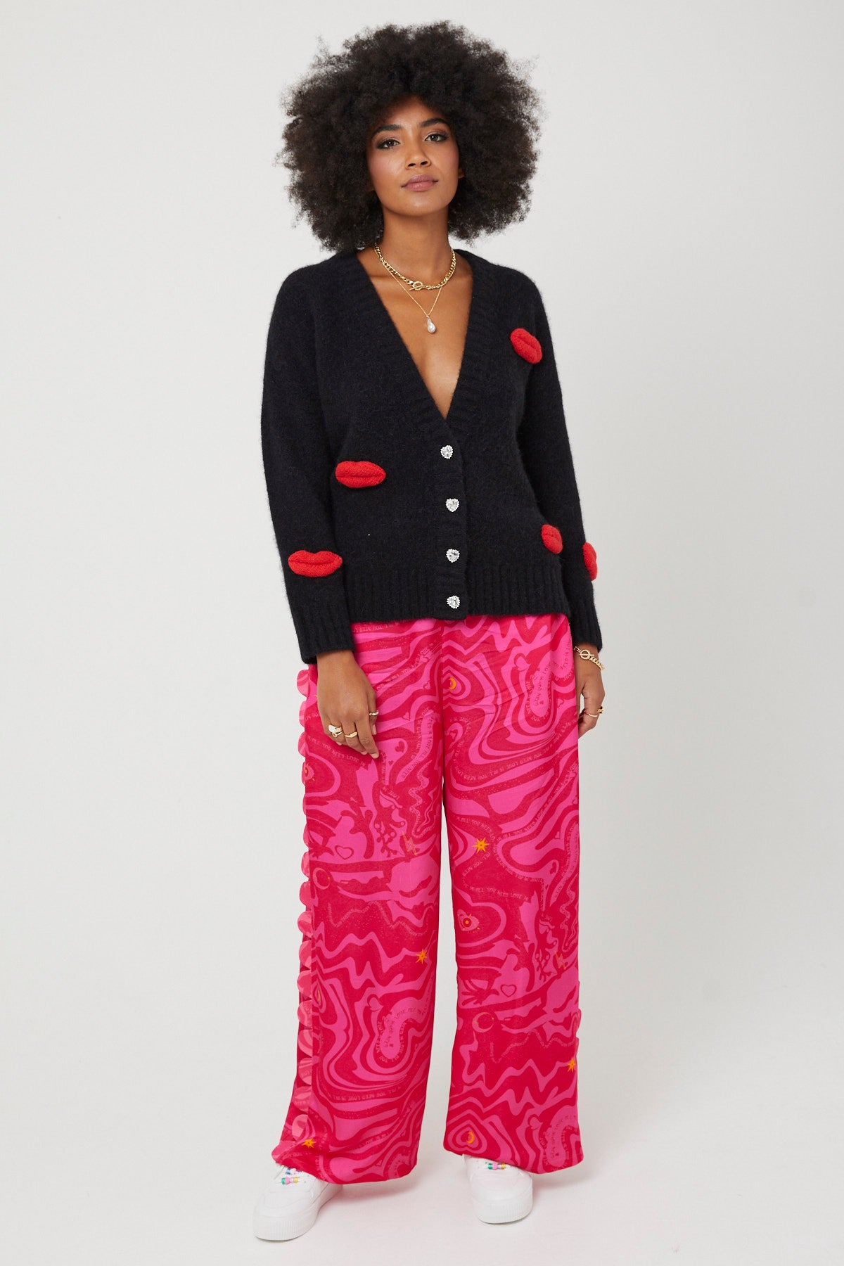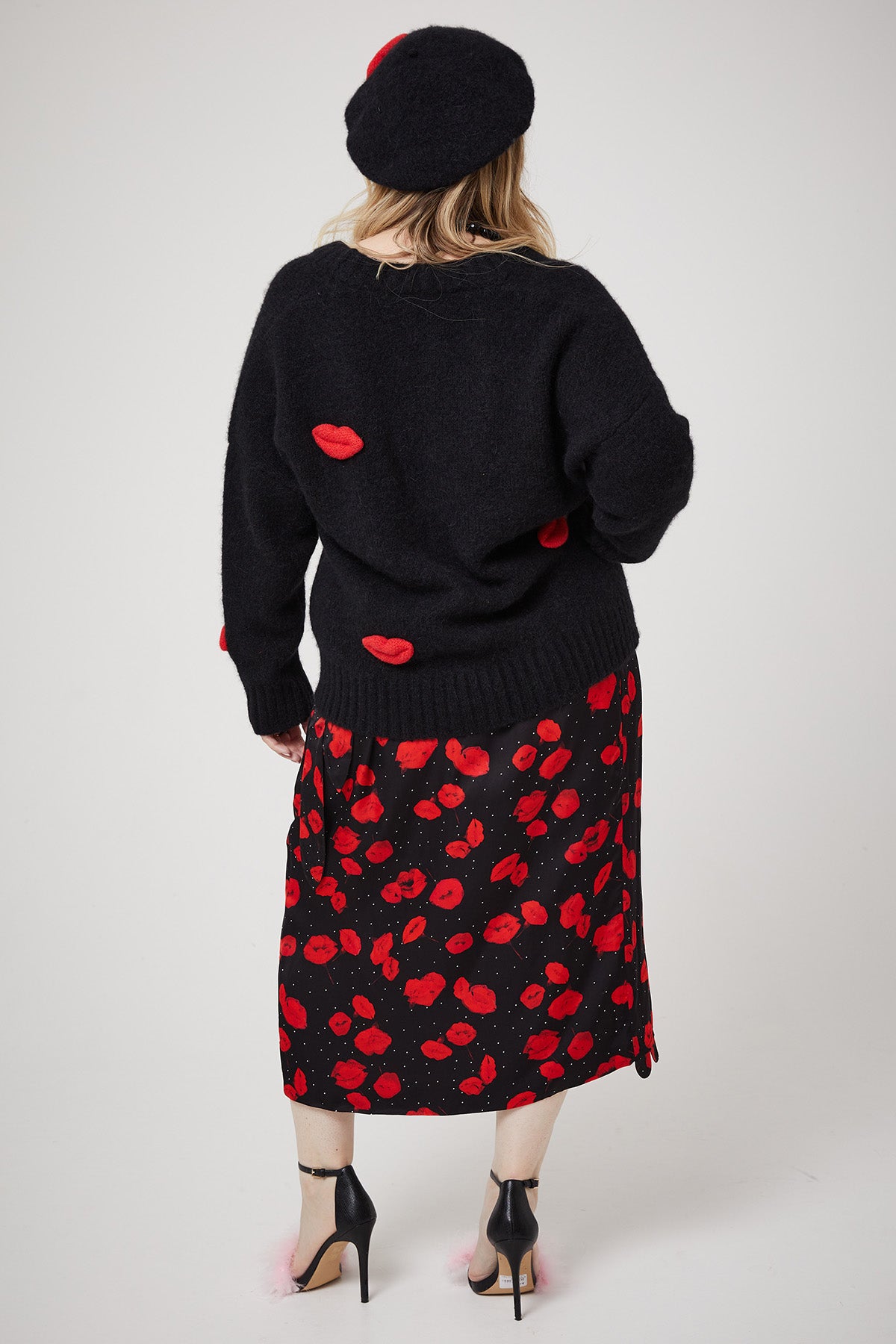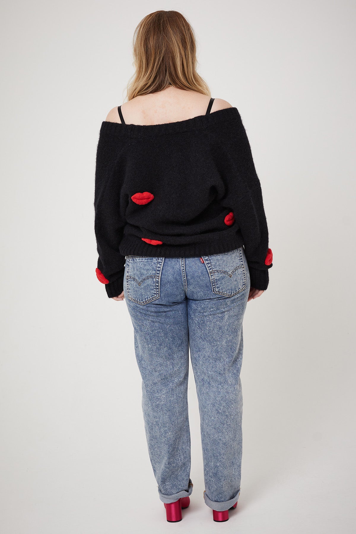 The Mick's Lips Knitted cardigan, A Long sleeve, super soft luxury blend baby alpaca and merino wool cardigan packed with full satisfaction…crochet padded lips…You will make a grown man cry in this beautiful cardigan.
